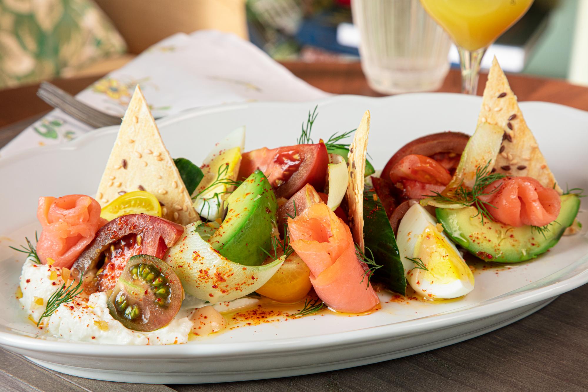 Avocado, Tomatoes, Cucumber, Yogurt, Feta, Lemon, Hard-boiled Egg, Olive Oil