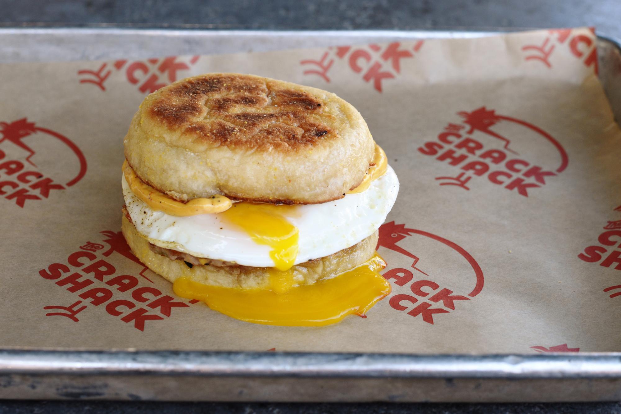 Maple Chicken Sausage, Crunchy Chili-Garlic Avocado Mayo, Sunny Egg, American Cheese, English Muffin